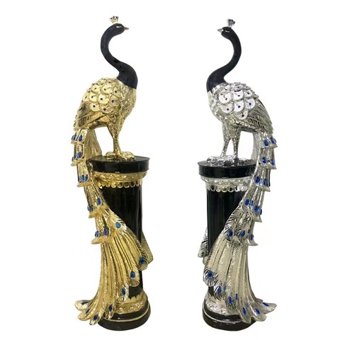 High-End Home Decoratie Feng Shui Grote Phoenix Standbeeld Gouden Pauw Hars Sculptuur
